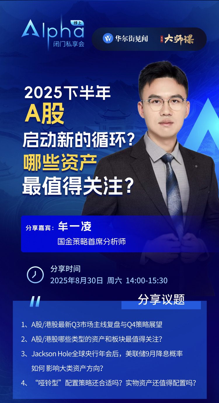 针对公共蔼然的中枢问题,咱们邀请国金证券首席策略官、常务副长处牟一凌,在8月30日下昼来主讲一次Alpha线上闭门私享会,跟公共研讨调换:A股牛市驱动新的轮回?哪些资产最值得关注?